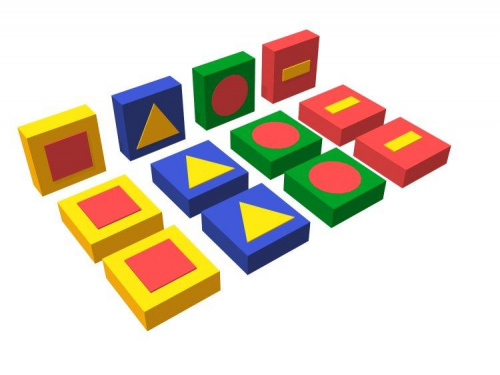 - Игра «Найди домик». Можно придумать несколько вариантов этой игры. Например, блоки разложить по полу в произвольном порядке. Дети выбирают, какая фигура будет их домиком. По команде «На прогулку» дети разбегаются в разные стороны и гуляют по комнате. Когда ведущий подаст команду «По домам», нужно как можно скорее добежать до своего домика-фигуры. Ещё одна идея: блоки можно убирать по одному, как в игре со стульями. Из игры выбывает тот ребёнок, который не успел занять домик. Третий вариант: до начала игры детям раздают цветные кубики. Пока звучит музыка, малыши бегают по залу. Как только музыка остановилась, они должны подбежать к фигуре такого же цвета, как кубик в их руках.