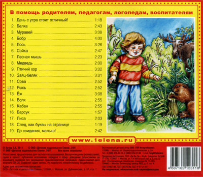Весёлые и интересные стихи на аудиодиске КТО ЖИВЕТ В ЛЕСУ познакомят малыша с самыми известными обитателями наших лесов. Маленький слушатель выучит их имена, узнает о том, как выглядят эти звери и птицы, познакомится с образом жизни лесных жителей, их повадками и привычками