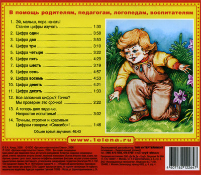 Весёлые и доступные для понимания стишки знакомят малышей с первыми десятью цифрами, приводят интересные и наглядные примеры того, где маленький слушатель может повстречать эти цифры в своём привычном окружении. И ещё, что немаловажно, эта программа тренирует внимание и память малышей, учит воспринимать новую познавательную информацию на слух