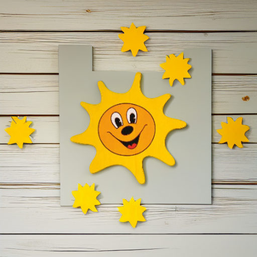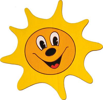 Веселое украшение для детской комнаты СОЛНЫШКО - оно выполнено из дерева и окрашено яркими красками.
