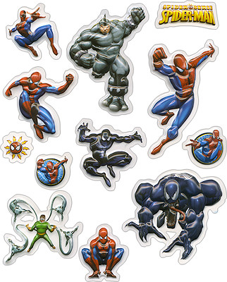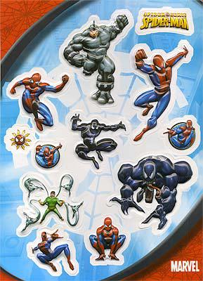 Набор объемных наклеек с персонажами мультфильма ЧЕЛОВЕК-ПАУК - с самим Человеком-пауком, его друзьями и врагами.