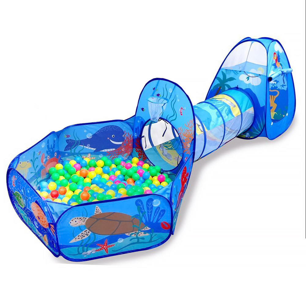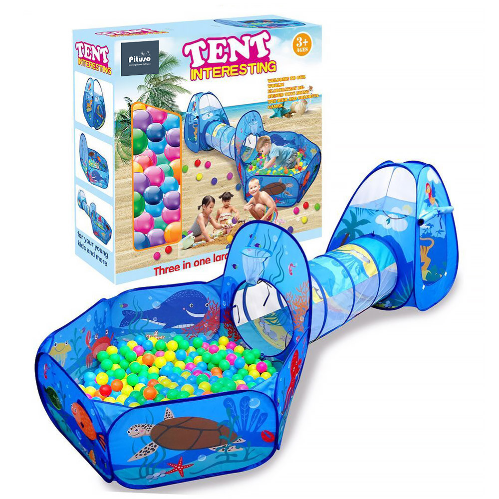 Оригинальный игровой набор Океан с домиком-палаткой, сухим бассейном и тоннелем для веселой игры целой компании ребятишек. Уютная и вместительная палатка замечательно подойдёт как для игр в помещении, так и для летнего отдыха детей за городом, на даче или пикнике. Дополнительные палатки - тоннель и сухой бассейн - позволят разнообразить игры детей.