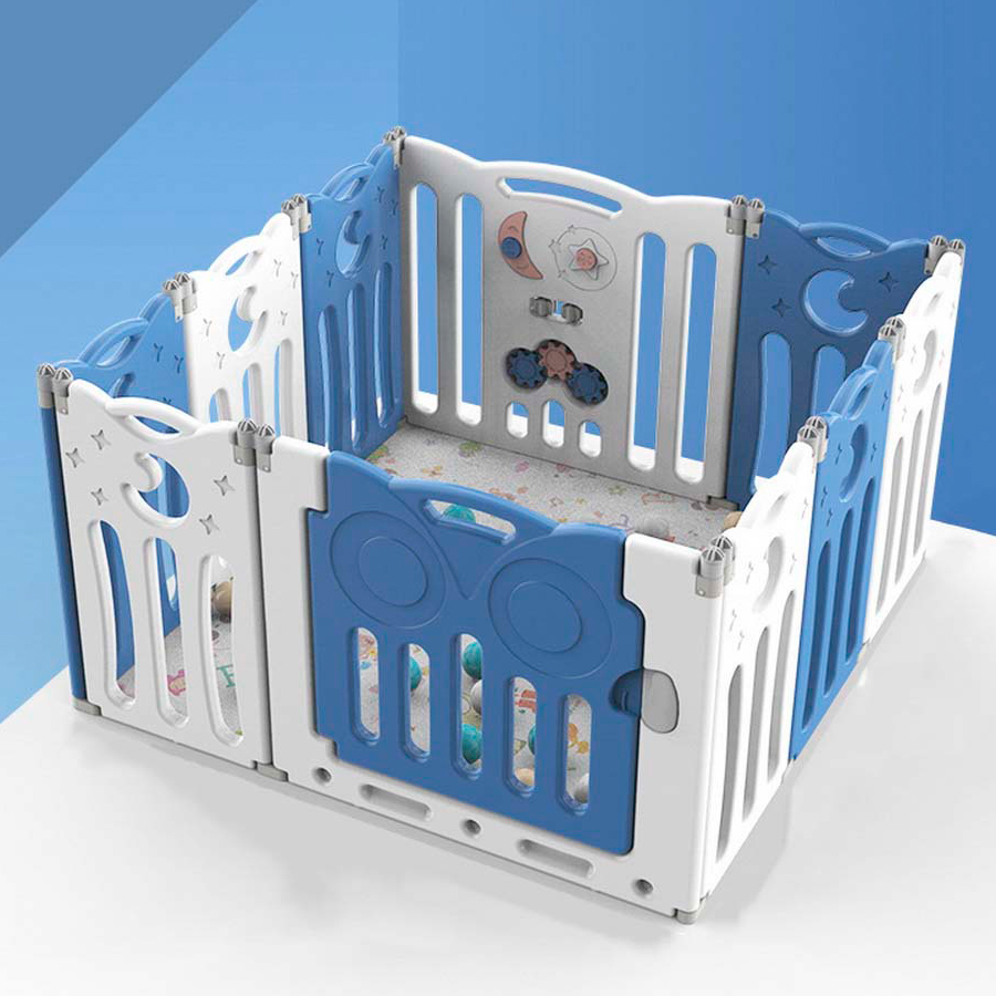 Бело-синее ограждение-манеж Детский манеж-ограждение Сова синий/белый L-ZDWL02 с красивой совой непременно понравится ребенку и станет для него надежным и уютным домиком. Родители смогут не волноваться за безопасность малыша, потому что манеж надежно запирается. В то же время, ребенок видит и слышит все происходящее вокруг, поэтому он не изолирован от окружающего мира. Изделие отличается повышенной прочностью и оригинальным оформлением. Манеж подойдет и для мальчика, и для девочки.