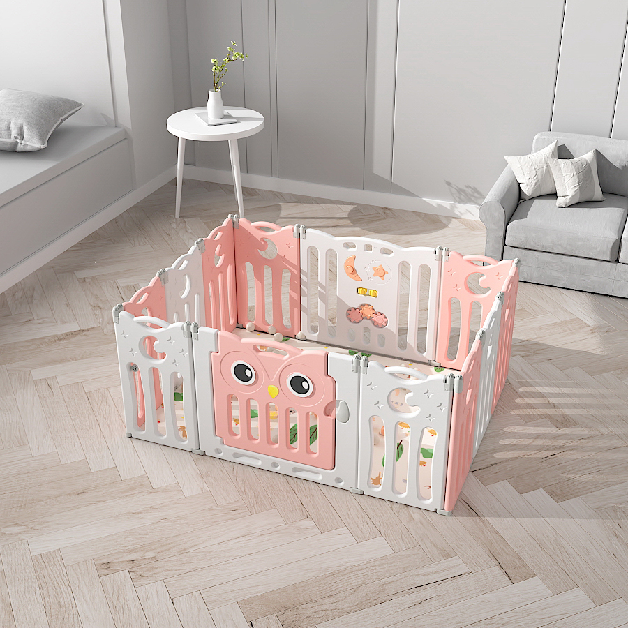 Большой детский манеж с открывающейся дверцей Детский манеж-ограждение Сова персиковый/белый L-ZDWL03 непременно обрадует малыша. Внутри большое пространство для свободных движений и активных игр. Дверца удобно и легко открывается, но сам выбраться из манежа ребенок не сможет, это большой плюс для родителей. Манеж персикового и белого цвета подойдет для любого интерьера. Благодаря большой площади внутри могут поместиться даже дети-двойняшки, при этом у них останется свободное пространство для игр.