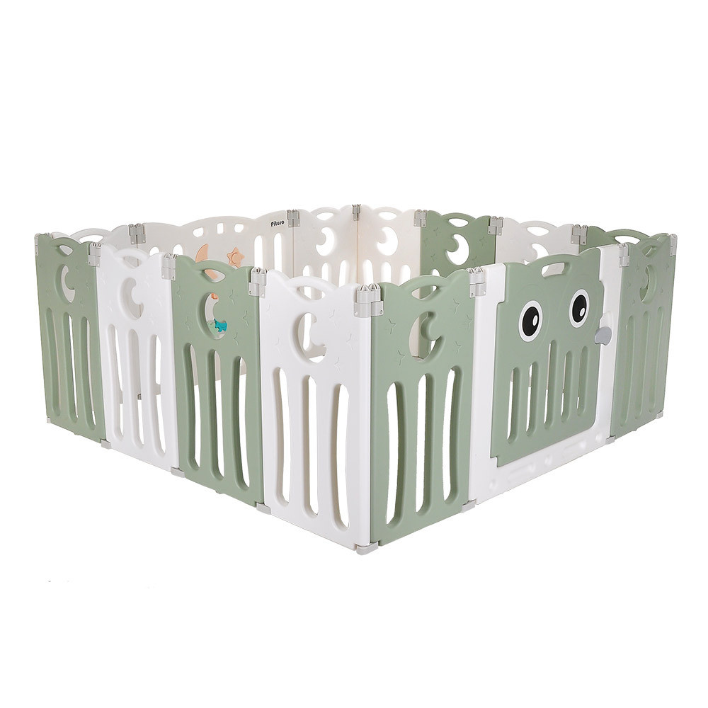 Манеж с ограждением серо-белого цвета Детский манеж-ограждение Сова зеленый/белый L-ZDWL04-green с забавной совой на дверце станет первым отдельным домиком для ребенка. Внутри манежа ребенок будет с удовольствием играть и вставать на ноги, делая первые шаги в комфортном и безопасном пространстве. Изделие выполнено из высококачественных материалов. Ребенок может держаться за пространство между стенками и легко вставать на колени, а потом подниматься в полный рост и ходить. Манеж подойдет и мальчику, и девочке. Это отличный вариант подарка на день рождения ребенка.