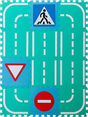 Набор из серии АВТОДОРОГА - 12 плиток с красочным сюжетным рисунком и 3 плитки с дорожными знаками.