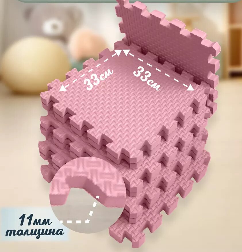 Мягкий и универсальный пол для детей - это то, что вам нужно! Розовый мягкий пол размером 33х33 см создаст уютную атмосферу в комнате вашей малышки. А детская игрушка в виде розового мягкого пола не только развлечет, но и будет полезной для развития ребенка. Ваша девочка будет в восторге от такого яркого и безопасного покрытия. Наслаждайтесь игрой и расслабляйтесь на нашем мягком полу!