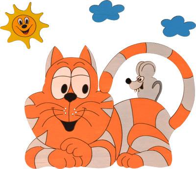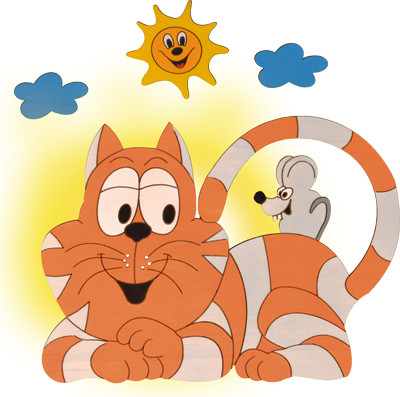 Настенная лампа с деревянной панелью КОШКА украсит детскую комнату.