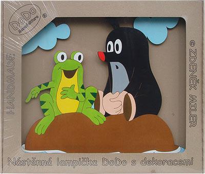 Настенная лампа с деревянной панелью КРОТ И ЛЯГУШКА украсит детскую комнату.