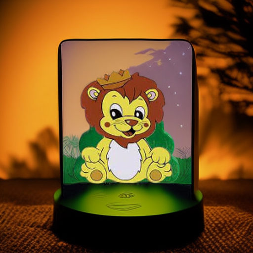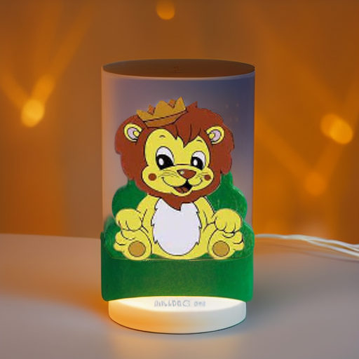 - лампочка спрятана за красочной деревянной панелью в виде фигурки дружелюбного Львенка, сидящего на деревянной подставке