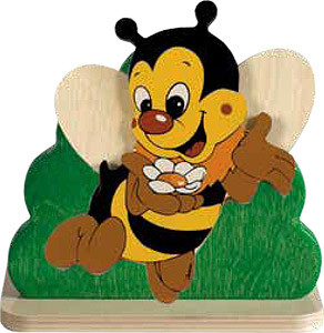 - лампочка спрятана за красочной деревянной панелью в виде фигурки очаровательной ПЧЕЛКИ, сидящей на деревянной подставке