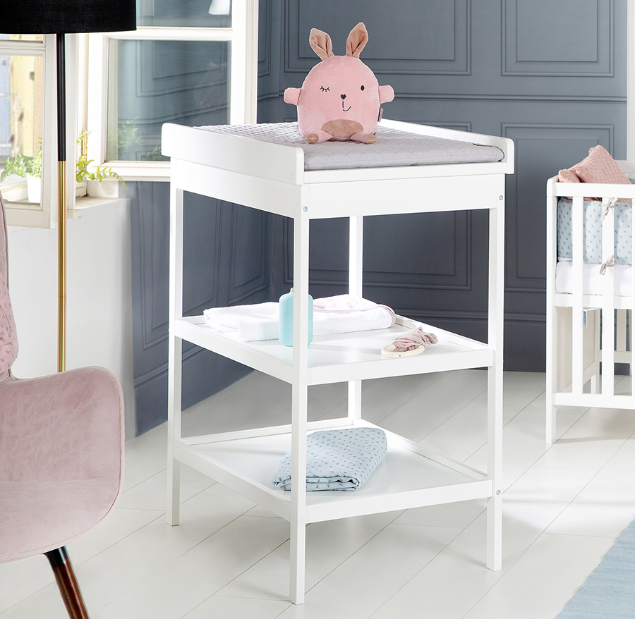 Стол для пеленания от Roba компактен и практичен одновременно, так как имеет две полки и небольшие размеры. Стол выполнен в современном европейском стиле и органично впишется в любую гостиную и детскую комнату. Благодаря удобной высоте пеленального столика 93,5 см уход за ребенком доставляет удовольствие родителям и малышу. В комплекте привлекательный матрасик для пеленания в современном дизайне "Roba style". Матрасик имеет водо- и грязеотталкивающим покрытием сверху и при этом очень приятный для кожи малыша. Поверхность коврика для пеленания, не содержащего вредных фталатов, легко протирается и моется. Все материалы, прошли испытания и сертифицированы. Немецкая компания Roba гарантирует отсутствие вредных веществ и безопасность всей своей продукции. Подходит для детей от 0 до 12 месяцев Материал матрасика для пеленания: микрофибра и полиэстер, наполнитель: флис из полиэстера, Материал пеленального стола: МДФ Размеры: Ш x Г x В: 54,5 x 82,5 x 99,0 см Вес: 13,50 кг