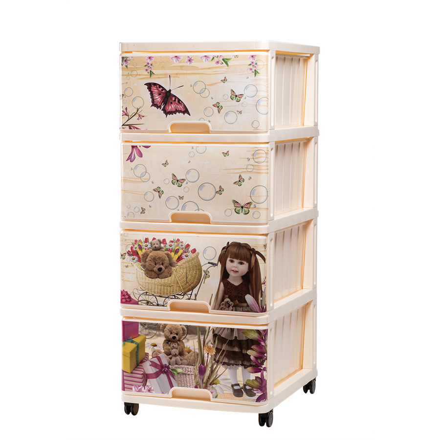Красочный пластиковый комод предназначен для хранения детских вещей. Он с легкостью впишется в детскую, ванную комнату, коридор. Яркая аппликация поднимет настроение, а достаточно вместительные ящики позволят хранить различные детские принадлежности.
