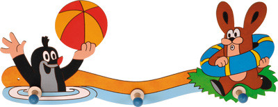 Яркая настенная вешалка с 3 крючочками КРОТ И ЗАЙЧИК НА МОРЕ выполнена из натурального дерева.
