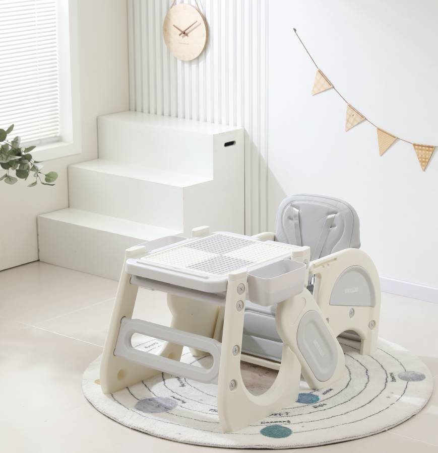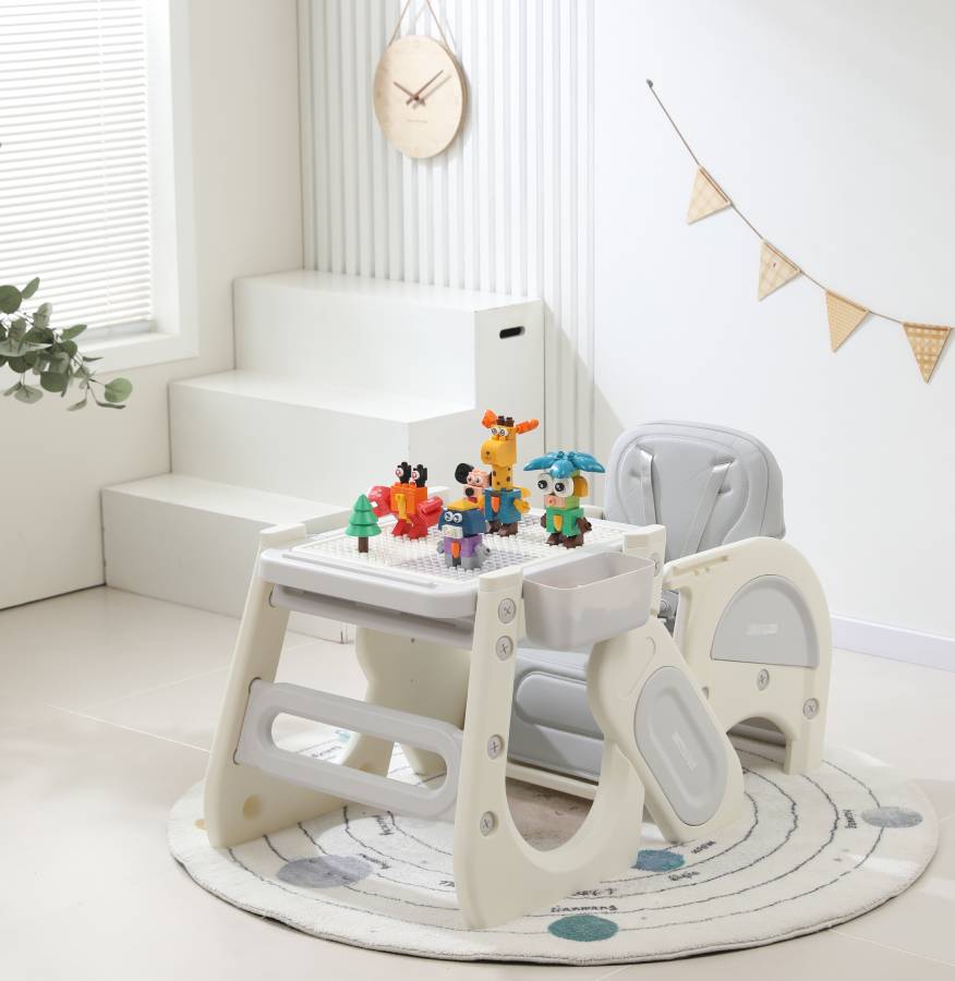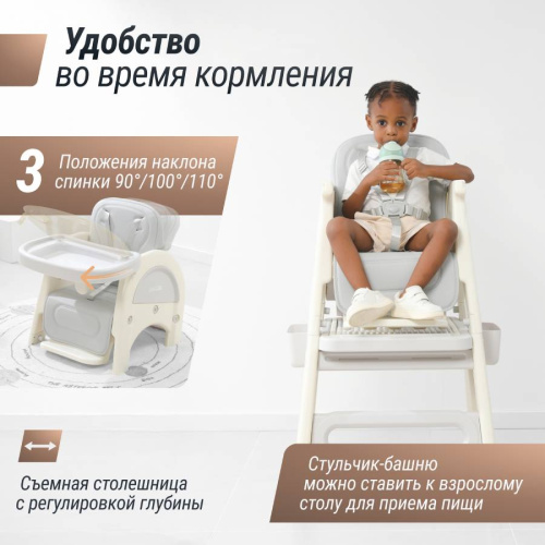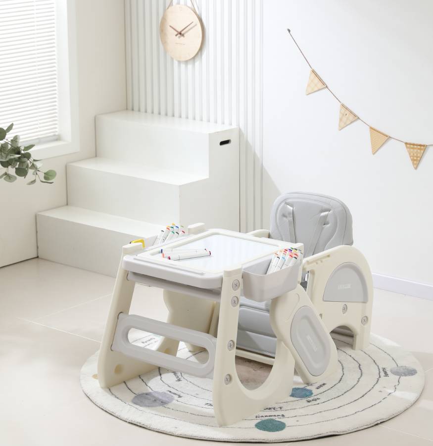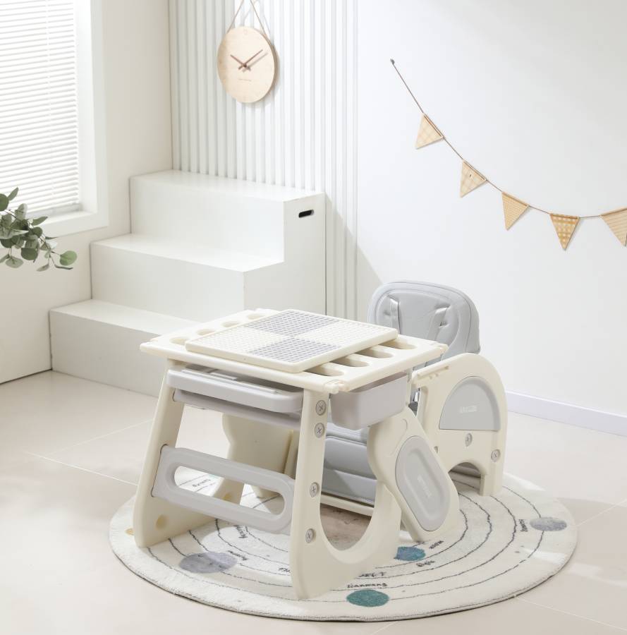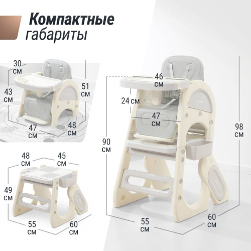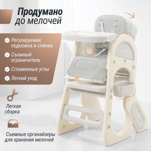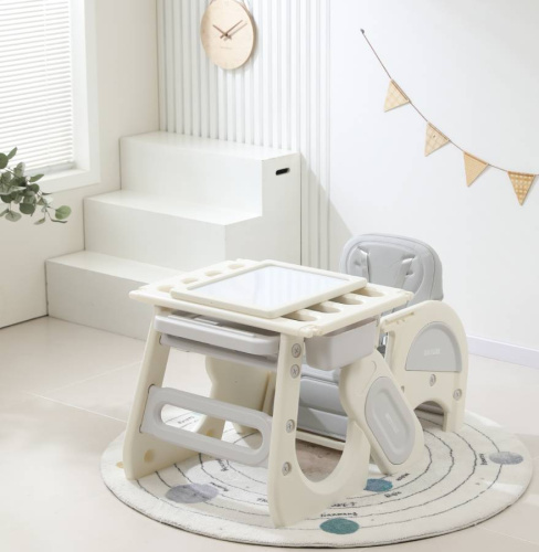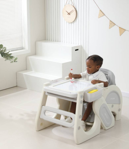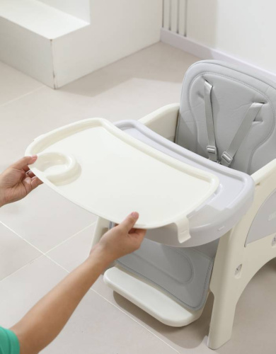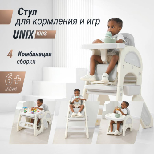 Уникальный детский стул для кормления UNIX Kids легко трансформируется в удобный стул и стол для игры! Каждый родитель знает, как важно создать комфортное и безопасное пространство для своего малыша. Многофункциональный стульчик для кормления — это идеальное решение, которое сочетает в себе широкие возможности, стиль и безопасность. Этот стул не просто место для кормления. В считанные минуты он превращается в стол и стул для игр, позволяя малышу наслаждаться творческими занятиями, рисованием или конструированием. С таким универсальным решением вы сможете сэкономить место и деньги, не покупая отдельные предметы мебели. Спинку стула можно регулировать в 3 положениях, а также регулируемая подножка обеспечат максимальный комфорт во время кормления. Вы можете подстраивать высоту стула в зависимости от роста малыша и использовать его даже тогда, когда он подрастет. Комплект выполнен из гипоаллергенного пищевого пластика с закругленными углами. Стул оснащен надежными ремнями безопасности и устойчивой конструкцией, что гарантирует защиту от случайных падений и обеспечивает стабильность во время кормления и игр. Съемный столик и вкладыш делают уход за стулом простым и удобным. Главная особенность стульчика – возможность трансформировать его в комплект детской мебели со столиком и стульчиком. Несколько игровых полей в комплекте сделают времяпровождение с трансформером еще более увлекательным! Вы можете без труда менять поле для игр – поставить поле для деталей лего, или поля для игр с водой или песком, или же поставить классическое поле для рисования и лепки. Комфорт и множество возможностей для игр сделают этот набор любимым местом малыша! Стильный и современном дизайн пластиковых столика и стульчика впишется в любой интерьер. Стульчик трансформер это многофункциональный предмет детской мебели, который будет расти и меняться вместе с малышом – от его первого кормления до первых творческих успехов!