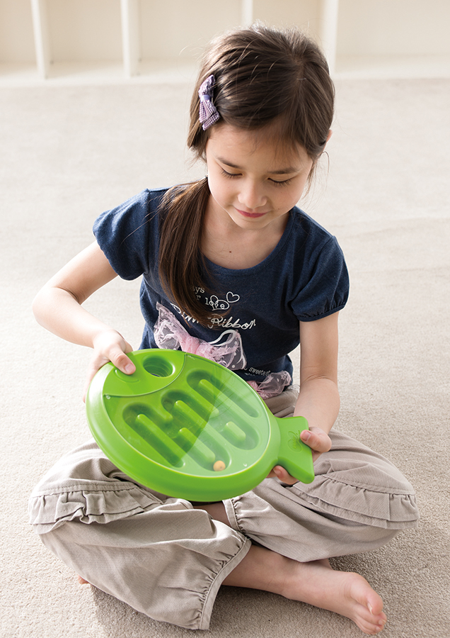 Тренажер состоит из двухстороннего диска с ручкой, желобами для прокатывания и сквозным отверстием для хранения шарика, и двух шариков разных размеров - большого и маленького. На одной стороне диска должен быть расположен глубокий желоб с несъемной прозрачной крышкой для прокатывания маленького шарика, на второй стороне - мелкий открытый желоб для прокатывания большого шарика. Конфигурации желобов на разных сторонах диска должны быть одинаковыми. Материал пластик Размер игрушки 25х21х3 см. Цвет зеленый. Диск можно использовать как ручной инструмент для развития зрительно-моторной координации в индивидуальной работе и для соревновательной деятельности. Способствует развитию зрительно-моторной координации, концентрации, внимания, эмоционально-волевой сферы. Weplay Tricky Fish — это портативный координационный лабиринт. Каждая сторона имеет разный уровень мастерства. Одна сторона линейной дорожки находится под прозрачным покрытием, детям нужно, чтобы шарик катился по дорожке. Другая сторона представляет собой неглубокую дорожку, которая создает больше проблем и помогает развивать ручное управление. Свободный шарик находится в открывающемся глазу рыбы для удобства хранения.