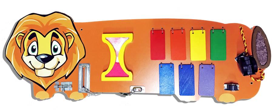 Тактильно-развивающая панель состоит из нескольких элементов для развития интеллекта ребенка. На ней представлены: песочные часы, которые можно вращать, чтобы наблюдать за движением песка; дверная цепочка для бесконечных тренировок детских пальчиков; 2 колесика, которые дети крутят и сравнивают (по размеру, расположению); хвостик-шнурок с кисточкой из пушистого ворса для развития сенсорики. В производстве используются экологически чистые сорта фанеры, водная акриловая краска, надежные стальные крепления. Размер изделия: Длина: 910 мм; Высота: 330 мм; Толщина: 32 мм. Тех характеристики: Оборудование допустимо к использованию в помещениях при температуре: от +1 до +30 и допустимой влажности 40-60 % Состав: Фанера, МДФ, металл Страна изготовления: Россия Торговая марка (бренд): Romsens Назначение: Развитие мелкой моторики рук, усидчивости, логики, воображения, памяти. Изделие имеет сертификат соответствия Техническому регламенту Таможенного союза ТР ТС 008/2011. Изделие соответствует нормам пожарной безопасности (сертификат соответствия ПОЖАРНОЙ БЕЗОПАСНОСТИ). Примечание: предприятие-изготовитель оставляет за собой право, без уведомления потребителя, вносить незначительные изменения в конструкцию, комплектацию, технические характеристики, внешний вид, включая изменения по упаковке, не ухудшающие потребительских свойств изделия и его методического назначения.