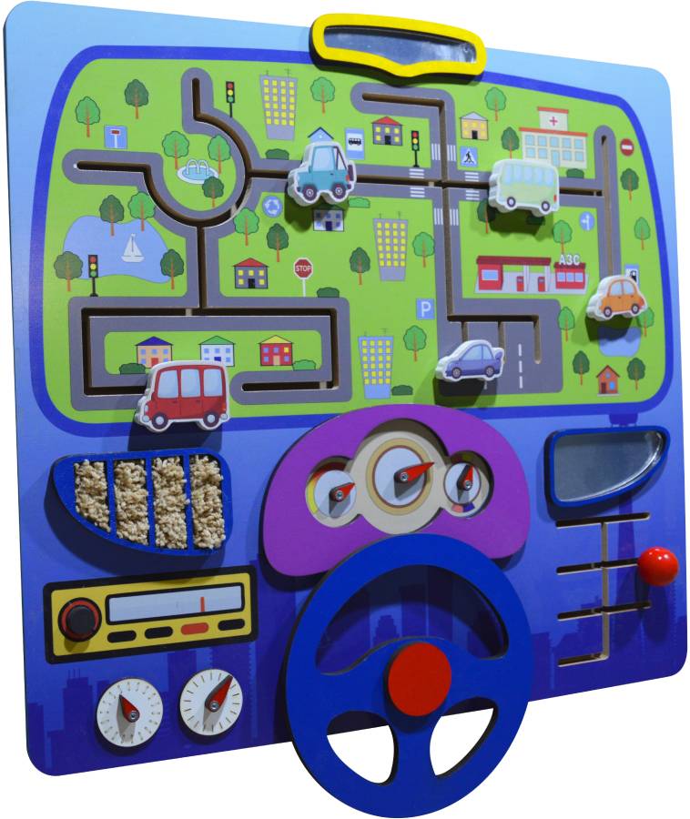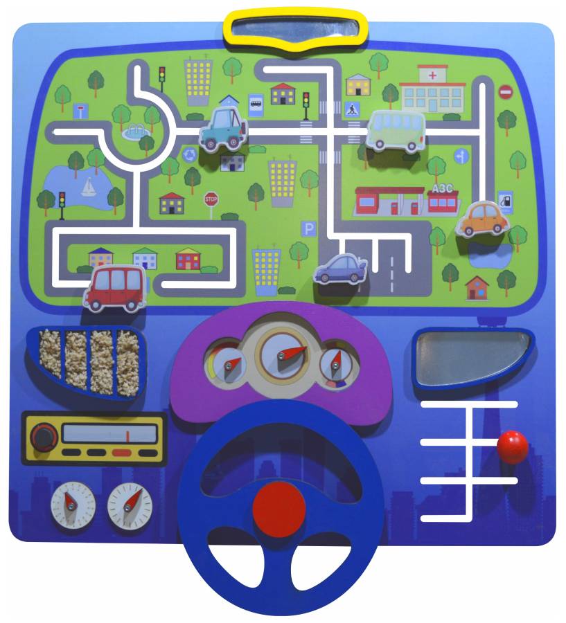 Бизиборд ПДД воплощает заветную детскую мечту – побывать на месте водителя авто. Поэтому и мальчики, и девочки с удовольствием «садятся за руль». Воспитателю остается лишь поддержать инициативу ребят и организовать поочередное вождение.