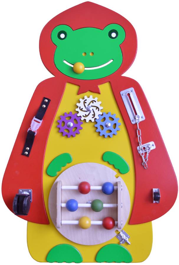 Данный бизиборд оснащен шестеренками, крутящимися элементами, бусинками на штанге, замочками, шпингалетом, ремешком. Предназначен для занятий в детских центрах и дошкольных учреждениях. Размеры: Высота: 755 мм; Ширина: 500 мм. Тех характеристики: Оборудование допустимо к использованию в помещениях при температуре: от +1 до +30 и допустимой влажности 40-60 % Состав: Фанера Страна изготовления: Россия Торговая марка (бренд): Romsens Назначение: Развитие мелкой моторики рук, координации движений, усидчивости, логики, воображения, памяти. Изделие имеет сертификат соответствия Техническому регламенту Таможенного союза ТР ТС 008/2011. Изделие соответствует нормам пожарной безопасности (сертификат соответствия ПОЖАРНОЙ БЕЗОПАСНОСТИ). Примечание: предприятие-изготовитель оставляет за собой право, без уведомления потребителя, вносить незначительные изменения в конструкцию, комплектацию, технические характеристики, внешний вид, включая изменения по упаковке, не ухудшающие потребительских свойств изделия и его методического назначения.
