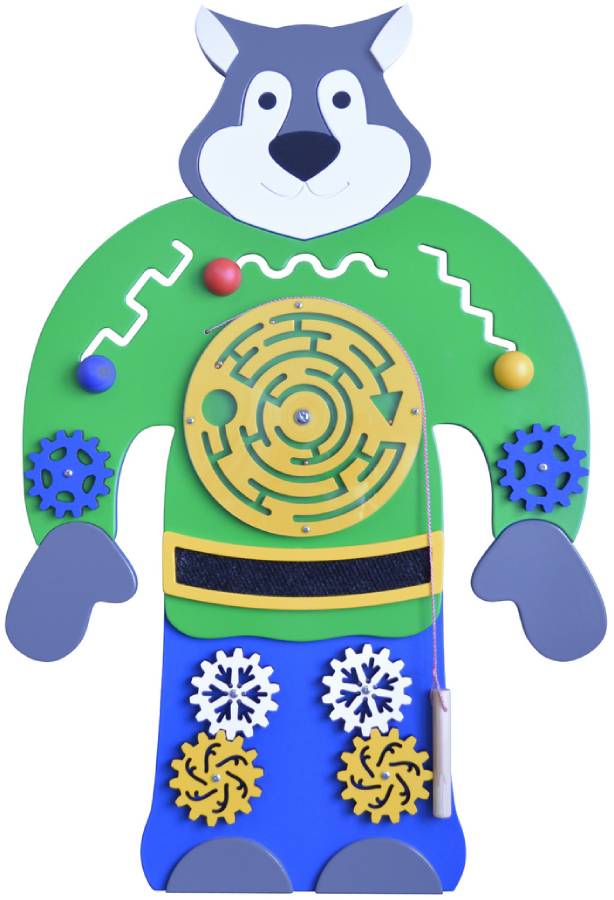 Бизиборд изготовлен в виде Волка из любимой сказки дошколят. Оснащен лабиринтами, шестеренками, магнитным лабиринтом, тактильными элементами. Размеры: Высота: 750мм; Ширина:504,17мм. Тех характеристики: Оборудование допустимо к использованию в помещениях при температуре: от +1 до +30 и допустимой влажности 40-60 % Состав: Фанера Страна изготовления: Россия Торговая марка (бренд): Romsens Назначение: Развитие мелкой моторики рук, координации движений, усидчивости, логики, воображения, памяти. Изделие имеет сертификат соответствия Техническому регламенту Таможенного союза ТР ТС 008/2011. Изделие соответствует нормам пожарной безопасности (сертификат соответствия ПОЖАРНОЙ БЕЗОПАСНОСТИ). Примечание: предприятие-изготовитель оставляет за собой право, без уведомления потребителя, вносить незначительные изменения в конструкцию, комплектацию, технические характеристики, внешний вид, включая изменения по упаковке, не ухудшающие потребительских свойств изделия и его методического назначения.