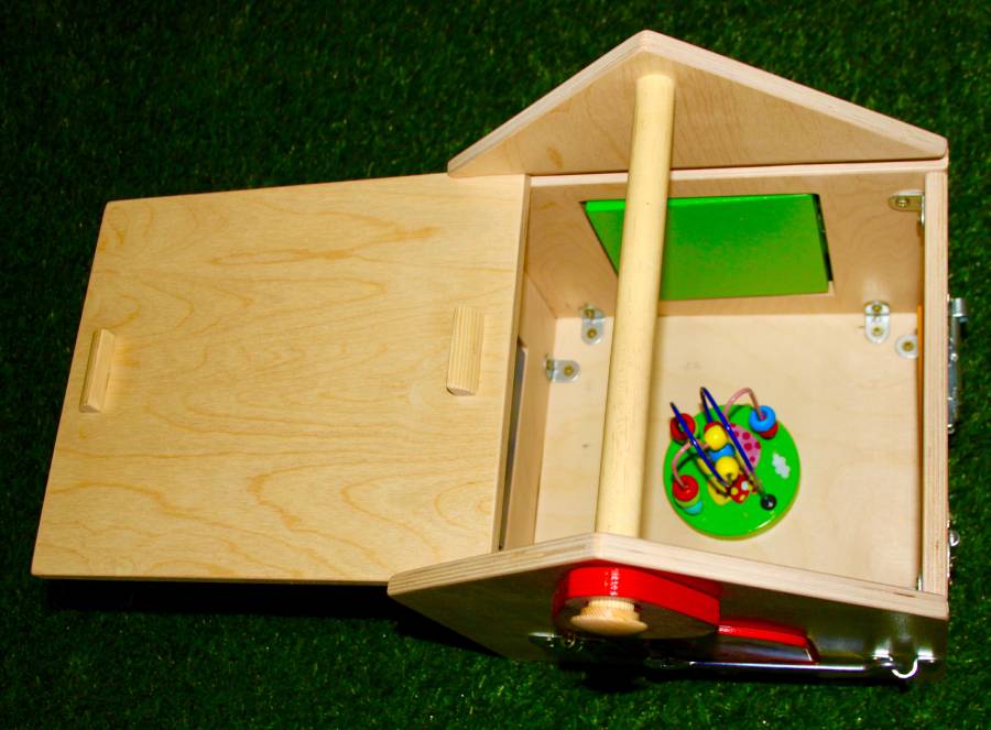 Тактильно-развивающий комплекс Домик с дверцами и замочками предназначен для развития мелкой моторики, изучения цветов и геометрических фигур. Домик оснащен миниатюрными дверцами и различными видами замков, открывая которые малыш обучается элементарным навыкам самообслуживания.