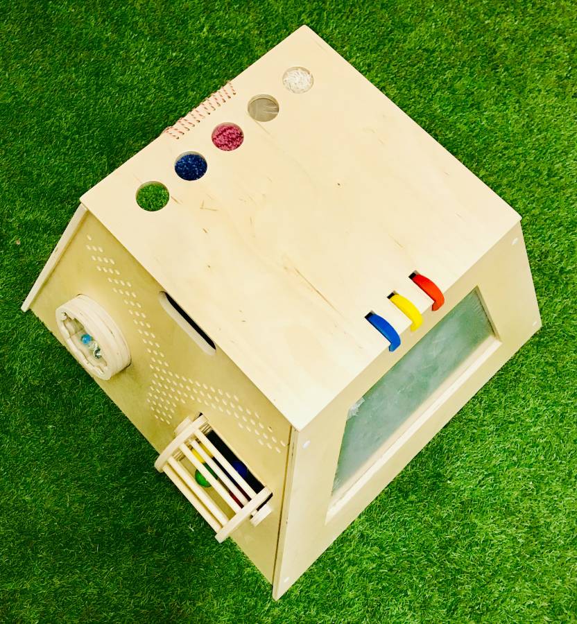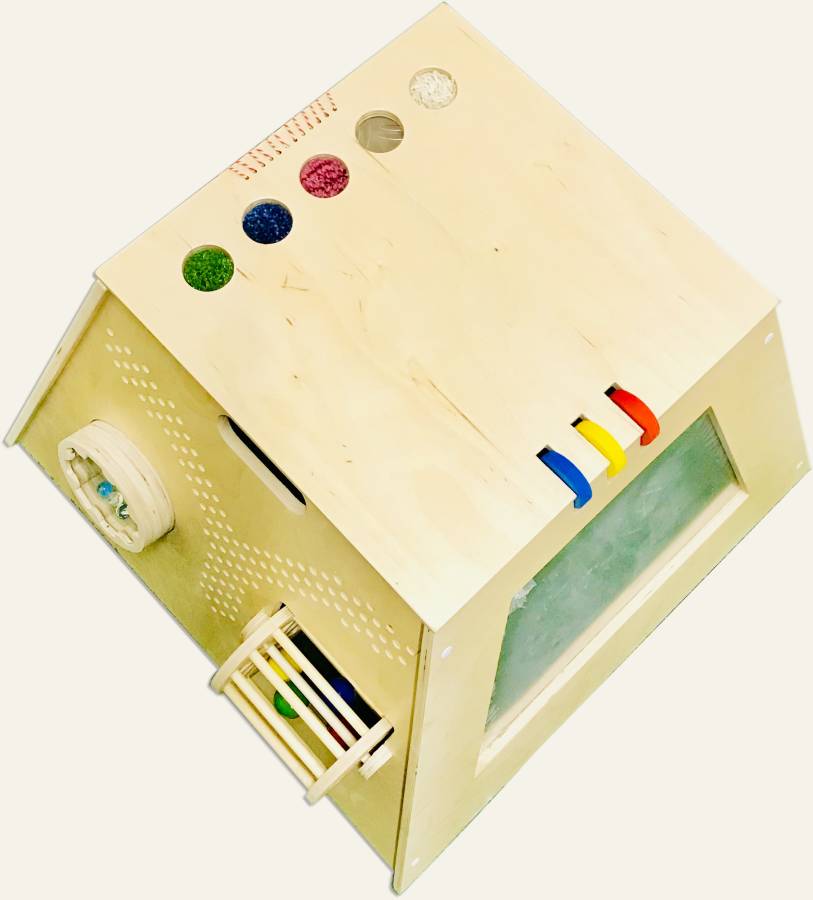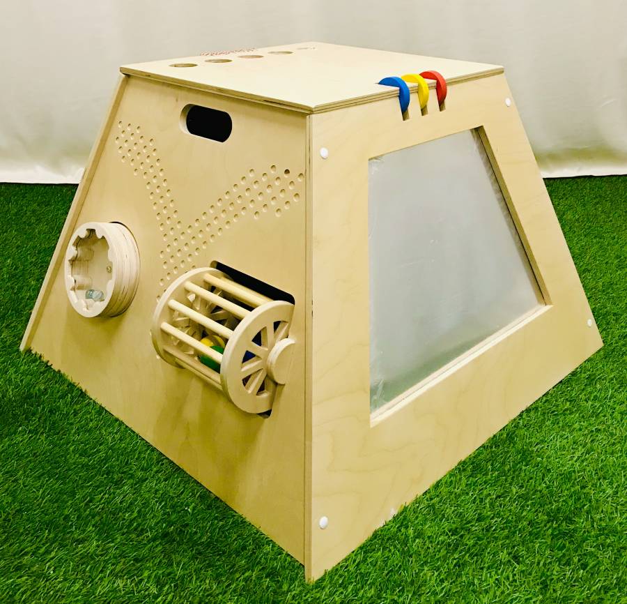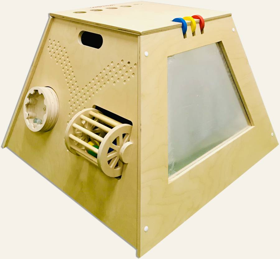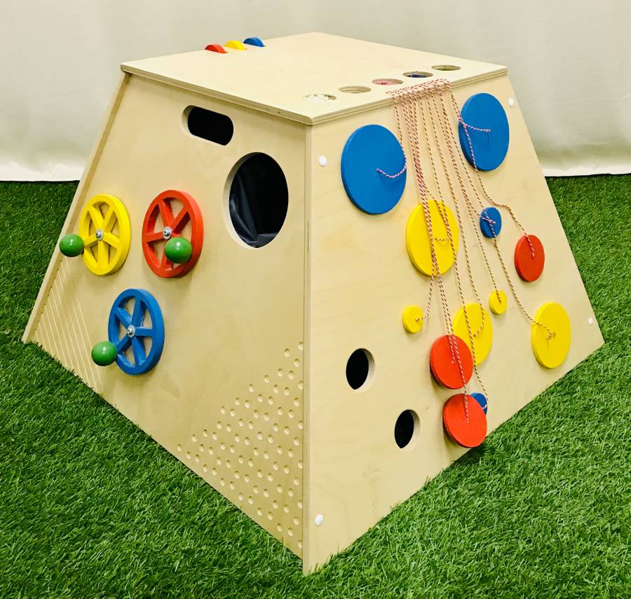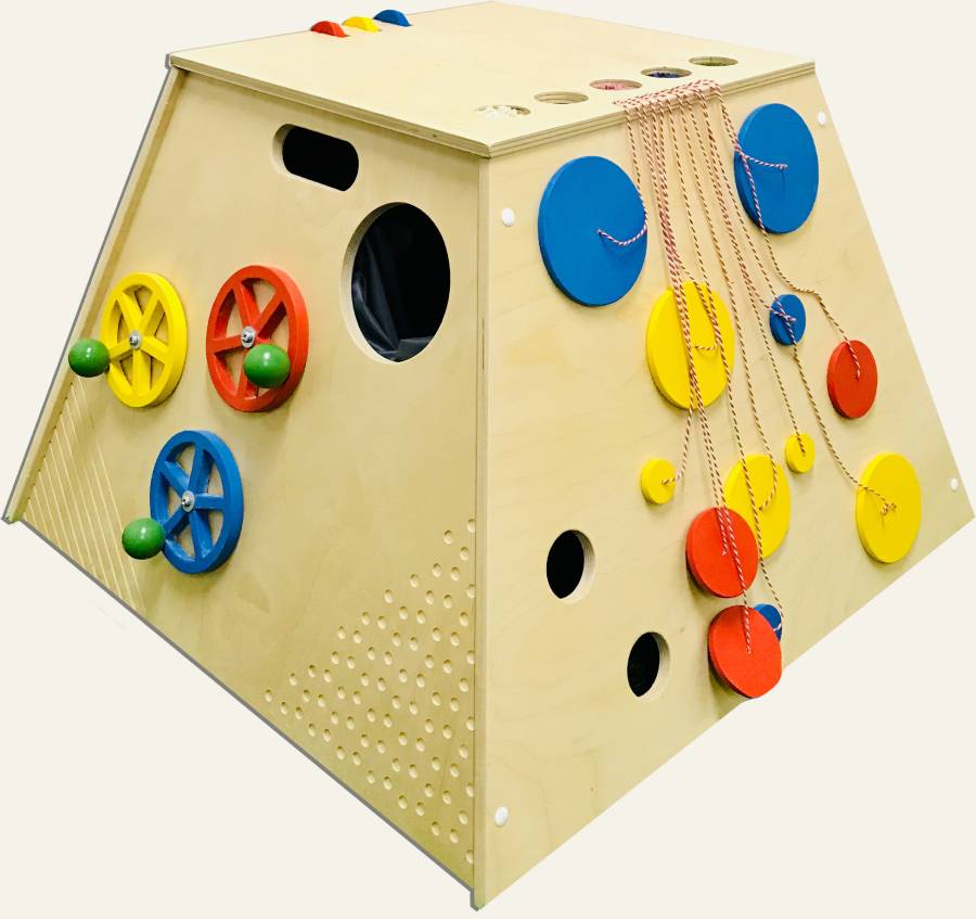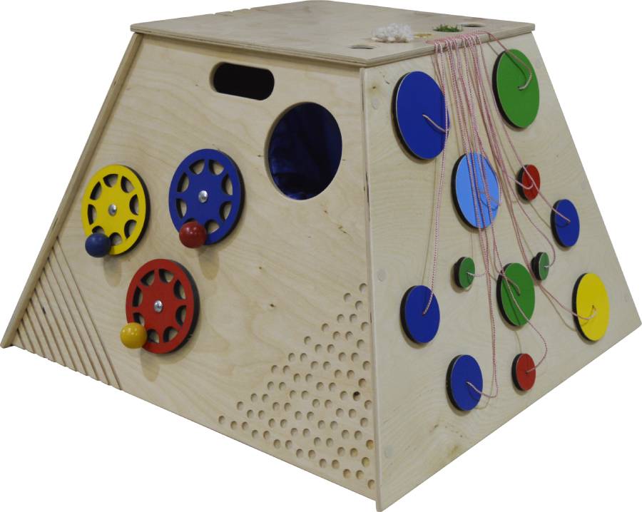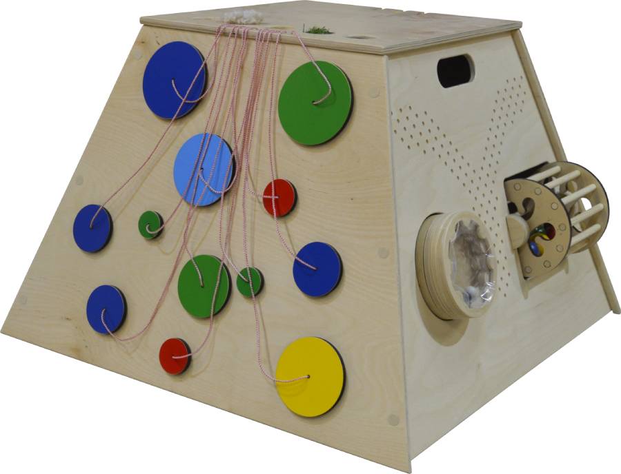 Тактильно-развивающий комплекс Пирамида предназначен для развития у детей тактильных ощущений, мелкой моторики, осязательных навыков. Корпус выполнен из фанеры к которому крепятся пластмассовые элементы, а также детали с ковровыми, алюминиевыми и зеркальными покрытиями. Комплекс состоит из блоков с выдвигающимися элементами. Благодаря своим размерам, с комплексом одновременно могут играть несколько детей. Соответствует экологическим и гигиеническим стандартам.