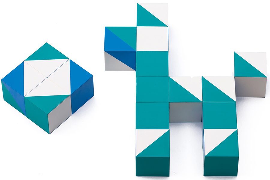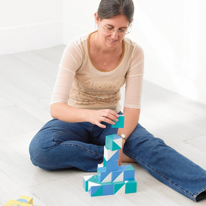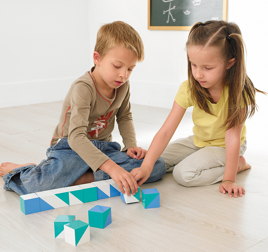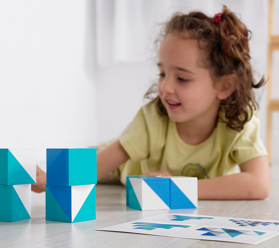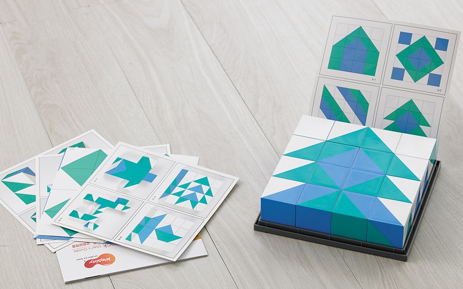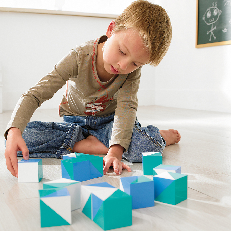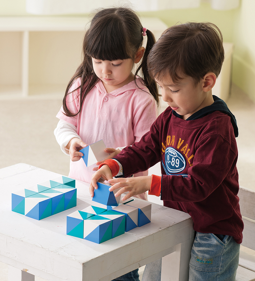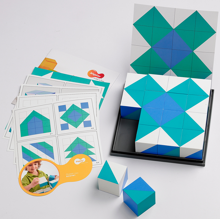 КУБИКИ ГЕОМЕТРИЧЕСКИЕ "ОКЕАН" (16 элементов, размер кубика: 5х5х5 см) Разработанный с использованием геометрических узоров цветов океана, неба и облаков, набор состоит из 16 блоков. Дети изучают математические концепции и расширяют свои творческие способности, создавая различные 2D- или 3D-конструкции. Вдохновленный сценами постоянно меняющегося океана, этот набор блоков объединяет цвета неба, океана и облаков в простые геометрические узоры из треугольников и квадратов. Возможности аранжировки безграничны. Игровая ценность Блоки помогают изучать математические концепции, создание изображений, построение 2D и 3D. Сходство синих цветов хорошо помогает детям лучше различать цвета. Ocean Blocks позволяет легко и весело исследовать геометрические концепции. Спецификация Составные части: Блок х 16 Двусторонняя игровая карта x 6 Путеводитель x 1 Ящик для хранения х 1 Размер: 5 х 5 х 5 см (Д х Ш х В) Материалы включают в себя: высококачественный пластик Страна происхождения: Тайвань Описание игры: - Развивающая игра для детей от 3 лет и старше; - Выполнена из высококачественной, прочной пластмассы; - Представляет собой игровой набор из 16 кубиков и 6 карточек с заданиями, которые имеют три уровня сложности: a, b, c; - Грани кубика имеют 6 вариантов окраски: однотонные - белая, зеленая, синяя грани; двухцветные, разграниченные по диагонали - сочетания белого с синим, зеленого с синим, белого с зеленым; - Кубики складываются в прочную коробку, которая удобна для хранения набора, а также может служить платформой для конструирования. Игрушка способствует: - развитию пространственного мышления: устанавливать связи между частью и целым, фигурой и фоном; - формированию умения ориентироваться в двумерном и трехмерном пространстве; - выявлению пространственных отношений и закономерностей; - развитию произвольного внимания и памяти; - развитию восприятия и воображения; - формированию целенаправленности деятельности, ориентации на конечный результат игры; - повышению уровня детской компетенции, самооценки и притязаний ребенка. Комментарии для родителей Данный игровой набор предназначен для конструирования различных узоров и построек, как в двумерном, так и в трехмерном пространстве, благодаря различным вариантам окраски кубиков. К игровому комплекту прилагаются специальные карточки с заданиями, которые пронумерованы по сериям и имеют постепенное усложнение: - карточки серии a представляют собой задания, где двумерный узор имеет форму квадрата и изображен в натуральную величину, и на начальных этапах обучения ребенок может конструировать методом наложения на карточку-образец; - карточки серии b также предлагают двумерные задания, но уже в уменьшенном размере, что исключает конструирование методом наложения. В этой же серии выполнение последних 4-х заданий усложняется тем, что нужно воспроизвести не только вид сверху, но и учитывать цветовое оформление боковых граней кубиков. К тому же предлагаемая конструкция не представляет собой квадрат; - в серии с предлагаются трехмерные образцы построек. Нужно воспроизвести правильно конструкцию и при этом соблюсти ее цветовое оформление с разных ракурсов