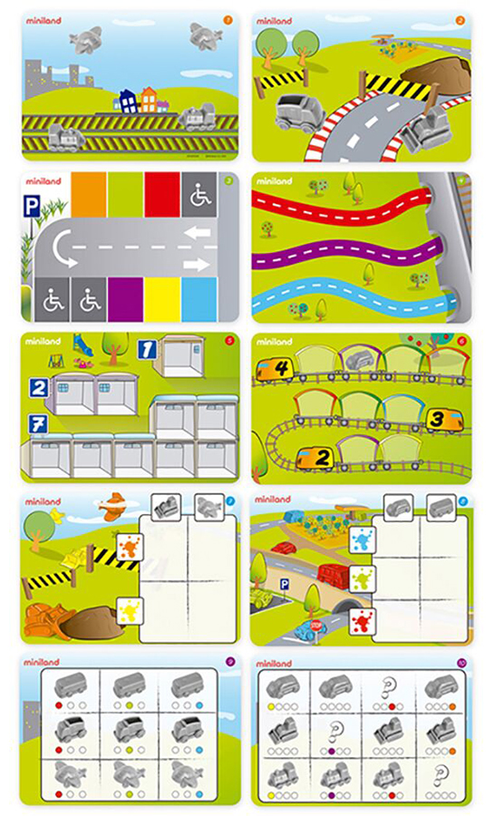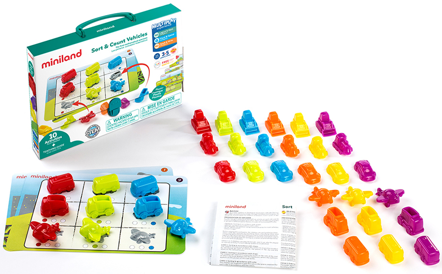 - В комплекте 36 транспортных средств, 5 двусторонних пластиковых рабочих карточек, руководство для учителя