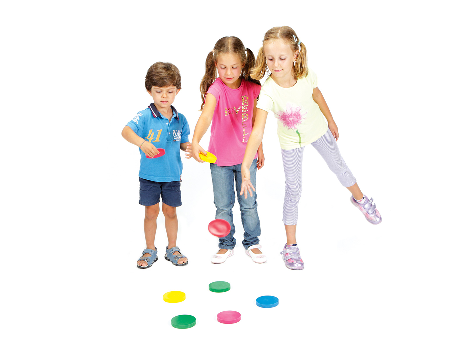 С помощью этих мягких компактных дисков можно создавать новые игры. Это многофункциональная игрушка, которая позволяет выполнять множество игровых мероприятий. Как развивающая игрушка, она идеально подходит для подбора цветов. Также можно использовать для создания игровых курсов, которые помогут развить баланс и равновесие.