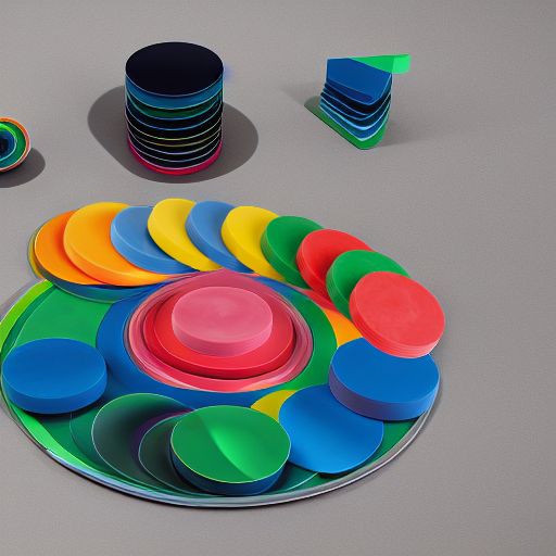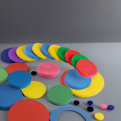 - В комплекте 9 кругов (по 2 шт. красного, желтого, синего, зеленого цвета и 1 шт. пурпурный)