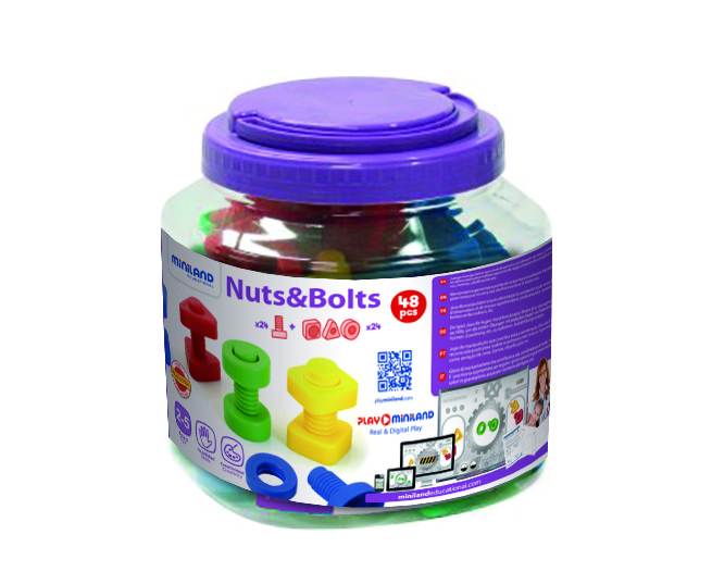 Набор из игрушечных гаек и винтиков в удобной банке позволит ребенку приобрести трудовые навыки и выполнить свою первую важную работу. Винты и гайки Набор для развития моторики Винты и гайки Nuts & Bolts (48 элементов) в контейнере Miniland 31721 удобно и легко закручиваются и раскручиваются обратно, поэтому их можно использовать много раз. Занятия с крепежными деталями научат ребенка быть ответственным и усидчивым и помогут малышу раскрыть свои творческие способности. Игрушку удобно брать с собой в дорогу или на прогулку. Изделие по достоинству оценят и мальчики, и девочки.