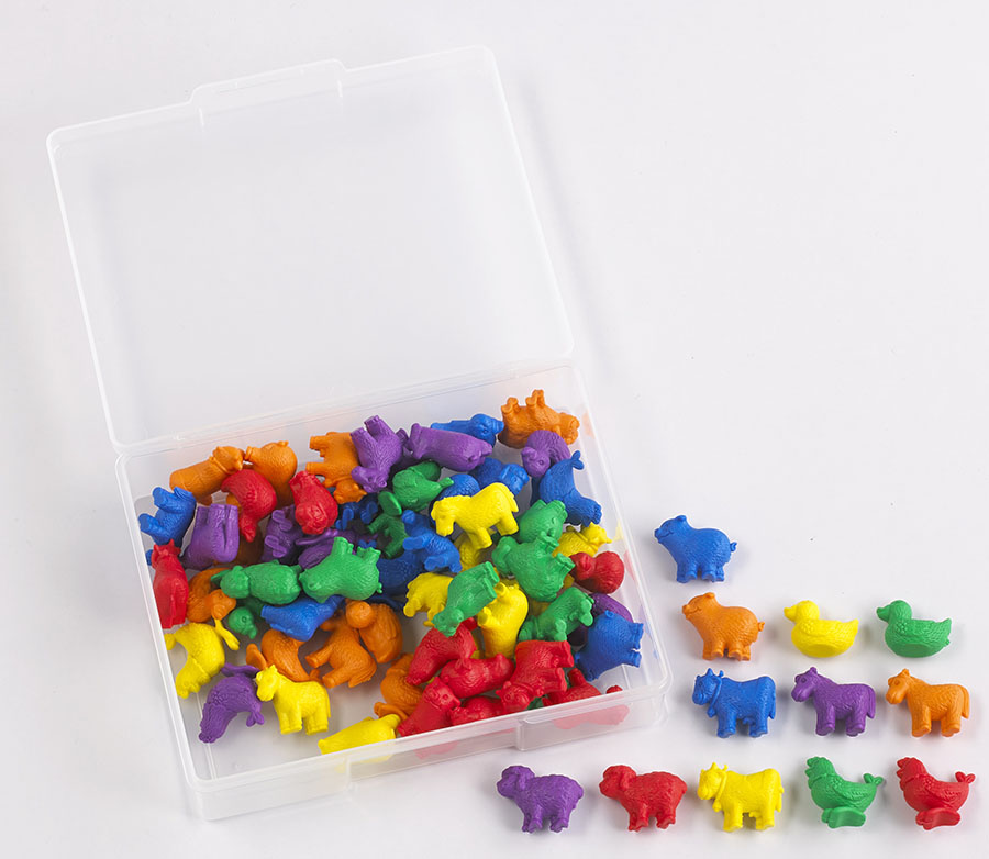 Образовательный набор Счётный материал с фигурками Домашние животные предназначен для развития мелкой моторики, математических способностей и речи ребенка, знакомит с домашними животными. С его помощью ребенок учится считать, сортировать по определенному признаку, развивает усидчивость и терпение. В наборе 72 фигурки 6 ярких цветов. Фигурки представлены в виде: курицы, коровы, утки, лошади, свиньи и барана. Все детали упакованы в контейнер.