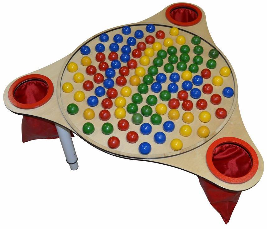 - В комплекте игровой стол, 72 шарика: 18 красных, 18 желтых, 18 зеленых, 18 синих