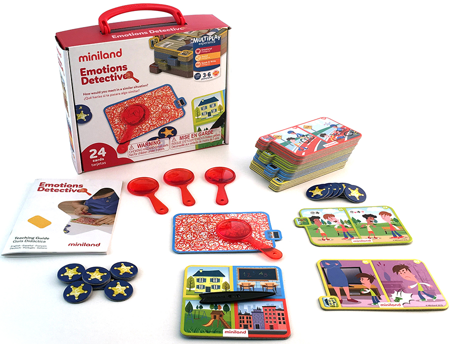 Совместная игра, в которой участники узнают, как контролировать свое настроение. В него входят карты, которые с одной стороны скрывают повседневное действие, а с другой изображают сцену, вызывающую гнев или печаль. Маленькие детективы должны будут выяснить, в чем дело, а затем найти решения, которые вызовут положительные эмоции. Совместная игра, в которой участники узнают, как контролировать свое настроение. В него входят карты, которые с одной стороны скрывают повседневное действие, а с другой изображают сцену, вызывающую гнев или печаль. Маленькие детективы должны будут выяснить, в чем дело, а затем найти решения, которые вызовут положительные эмоции.