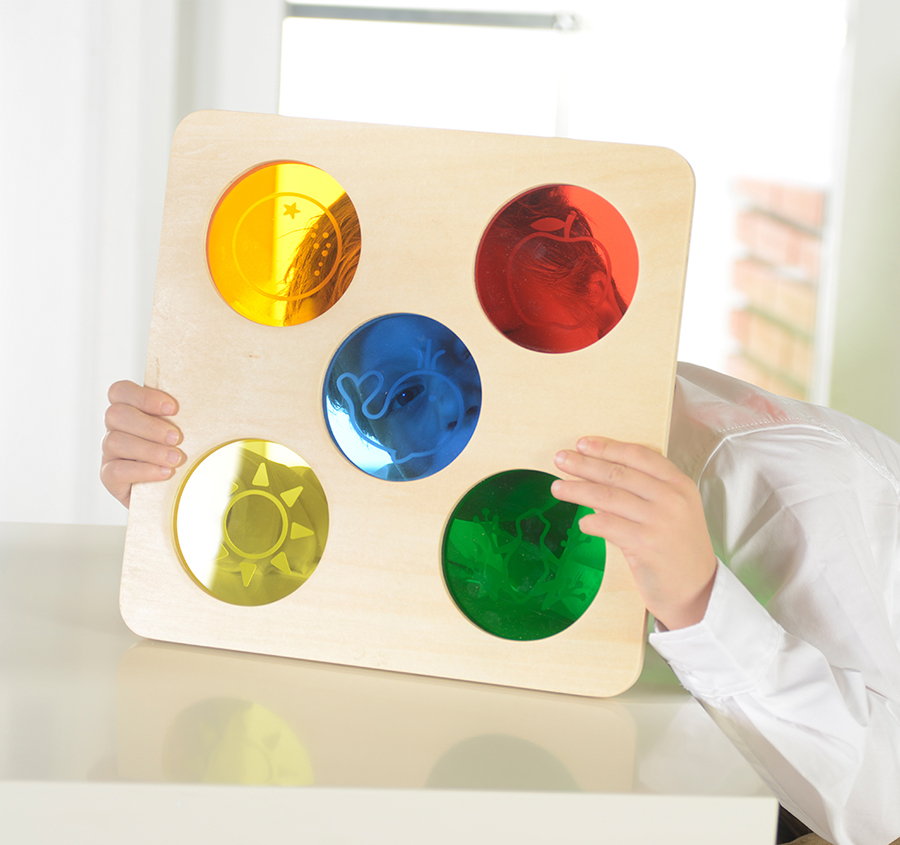 Основание панели выполнено из березовой фанеры, на поверхности которой представлены 5 полупрозрачных кругов в красном, желтом, синем, зеленом и оранжевом цветах. С ее помощью дети могут узнать о разнообразии цветов и весело исследовать мир с помощью цветных кружочков. Эта цветная доска для просмотра имеет 5 акриловых вставок красного, желтого, синего, зеленого и оранжевого цвета. Они прозрачны, поэтому, если посмотреть на них, мир кажется изменившимся. Кроме того, на поверхности акрила выгравированы контуры предметов этого цвета, включая зеленую лягушку, синего кита, желтое солнце, красное яблоко и оранжево-оранжевый! Полезный ресурс для научных исследований и смешивания цветов на световой панели.