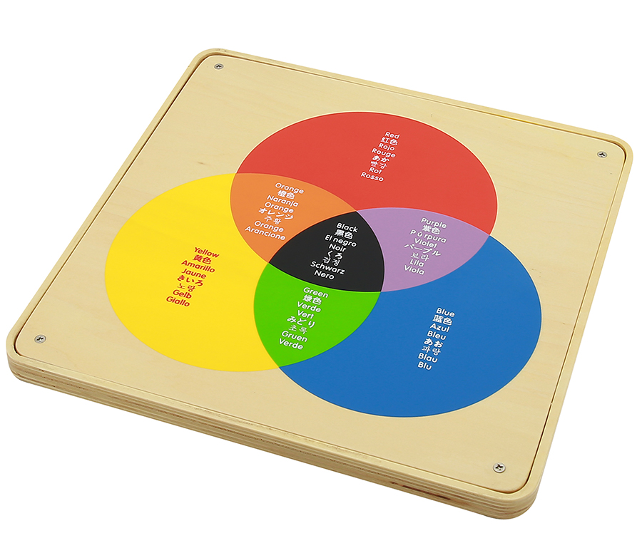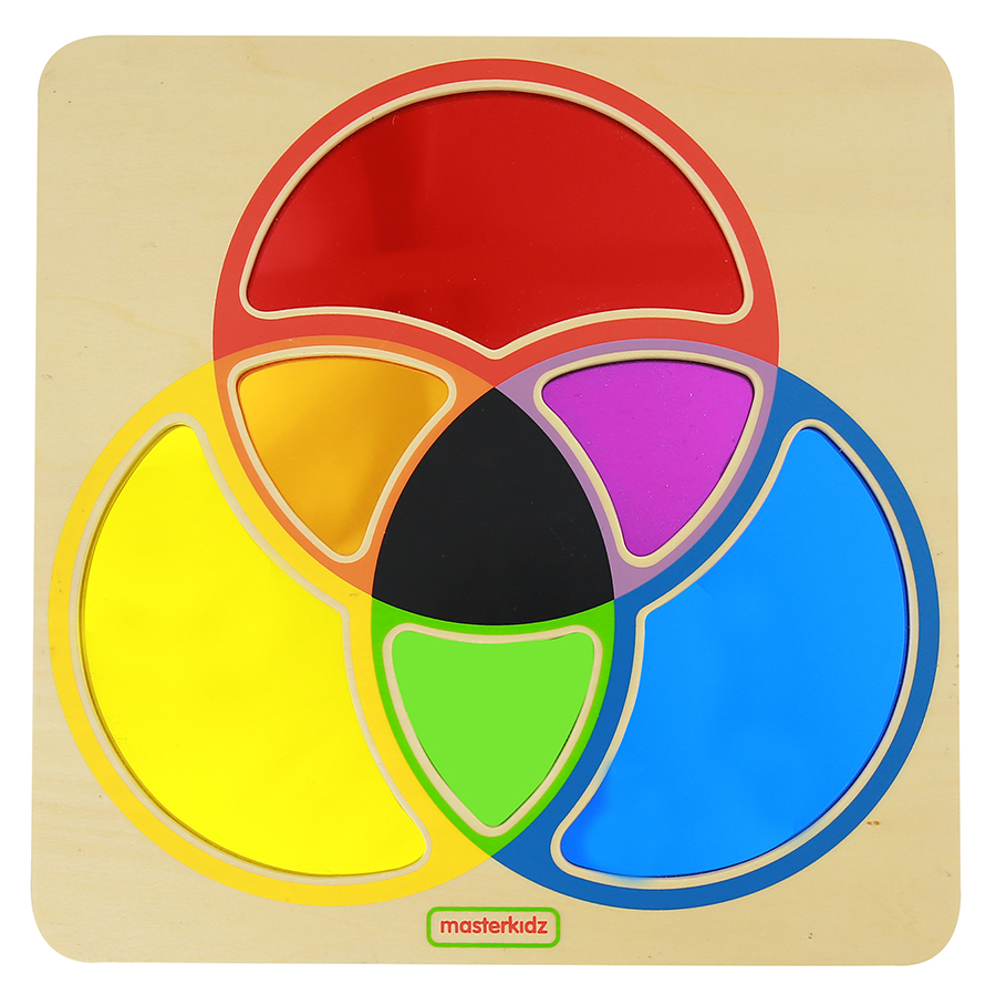 Панель-мозаика с 3-х цветными кругами предназначена для знакомства и изучения цветов, а также наглядно дает представление об эффекте смешивания цветов. На этой обучающей доске для смешивания цветов показан эффект смешения любых двух основных цветов для создания вторичного цвета (красный и синий дают фиолетовый и т. д.). Панели изготовлены из прозрачного, но хорошо отражающего акрила, поэтому дети могут поднести панель к глазам и увидеть мир через нее, а если положить ее на поверхность стола, они смогут увидеть свое лицо, отраженное в том же цвете, что и панель. просмотрено. Очень интересная визуальная обучающая доска