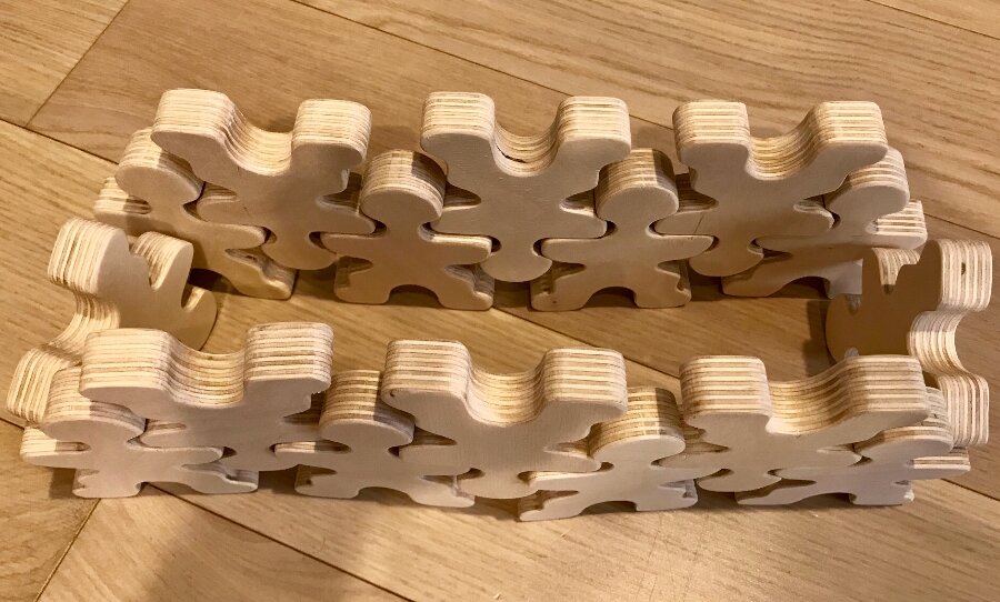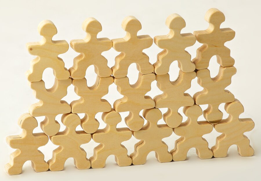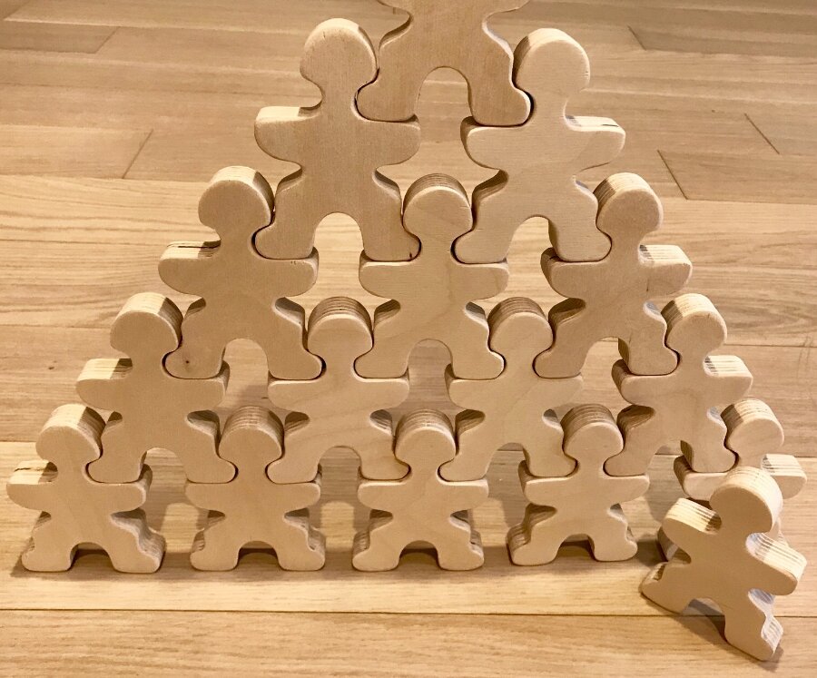 Эта деревянная игрушка Пипл - конструктор-развивайка! Можно начать с самого простого, а затем постепенно увеличивать сложность.
