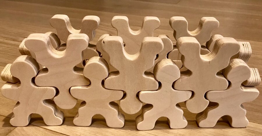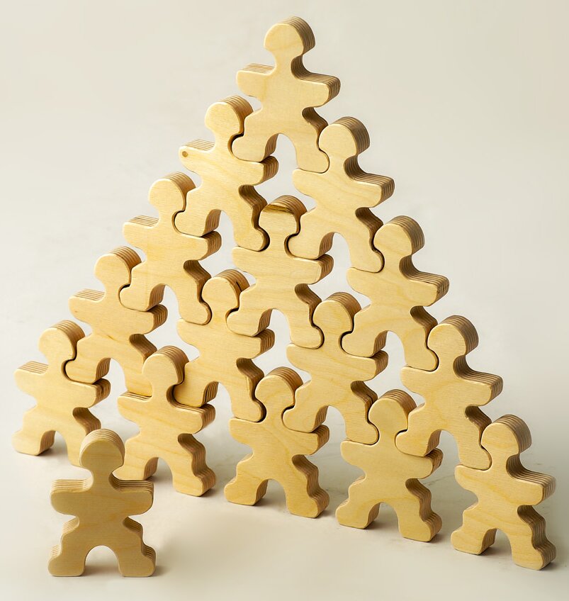 Эта деревянная игрушка Пипл - конструктор-развивайка! Можно начать с самого простого, а затем постепенно увеличивать сложность.