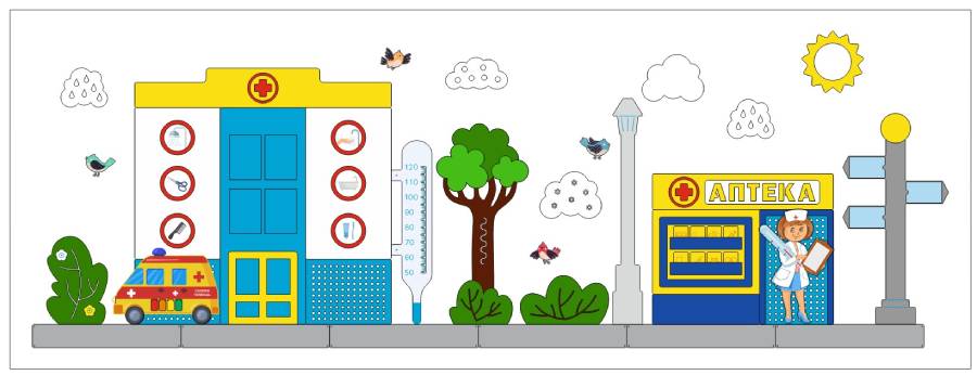 Панель "Поликлиника" идеально подходит для оформления стен в ДОУ, особенно возле медицинского кабинета. Поможет малышам избавиться от страха перед посещением медкабинета и сформирует привычку заботиться о своем здоровье и здоровье окружающих. Развивающие элементы панели направлены на развитие мелкой моторики и сенсорных способностей, речи, мышления, памяти и внимания, изучение счета. Размеры: Длина 6071 мм; Высота 2100 мм Тех характеристики: Оборудование допустимо к использованию в помещениях при температуре: от +1 до +30 и допустимой влажности 40-60 % Состав: МДФ Страна изготовления: Россия Торговая марка (бренд): Romsens Назначение: Для развития мелкой моторики, декоративное оформление стен в ДОУ Изделие имеет сертификат соответствия Техническому регламенту Таможенного союза ТР ТС 008/2011. Изделие соответствует нормам пожарной безопасности (сертификат соответствия ПОЖАРНОЙ БЕЗОПАСНОСТИ). Патентные права на дизайн принадлежат ООО "Романгрупп", копирование запрещено. Примечание: предприятие-изготовитель оставляет за собой право, без уведомления потребителя, вносить незначительные изменения в конструкцию, комплектацию, технические характеристики, внешний вид, включая изменения по упаковке, не ухудшающие потребительских свойств изделия и его методического назначения