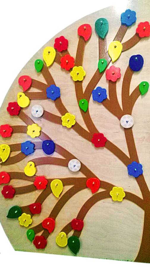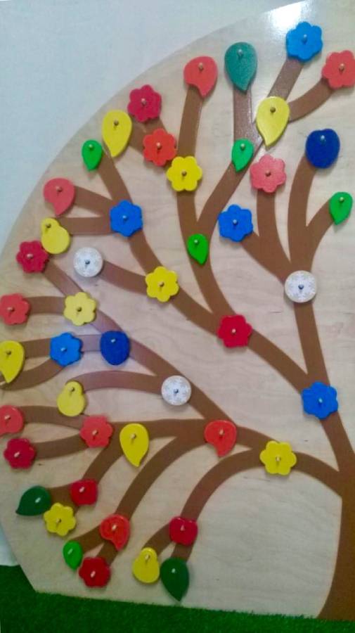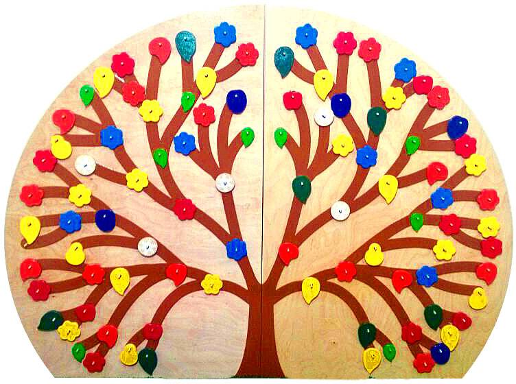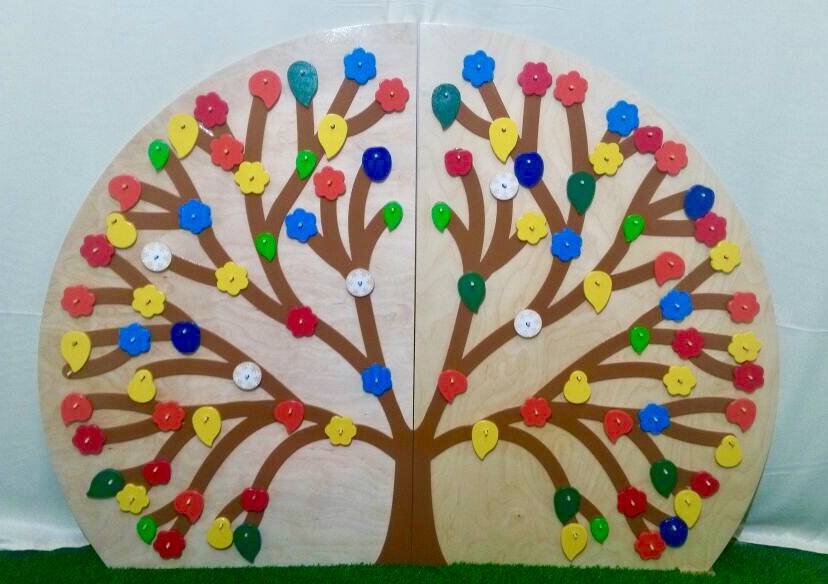 Настенная деревянная панель в виде Дерева с пышной кроной, на которой можно разместить множество фигурных элементов. Можно установить как у стены, закрепив панели рядом, так и в углу комнаты, расположив панели под углом.