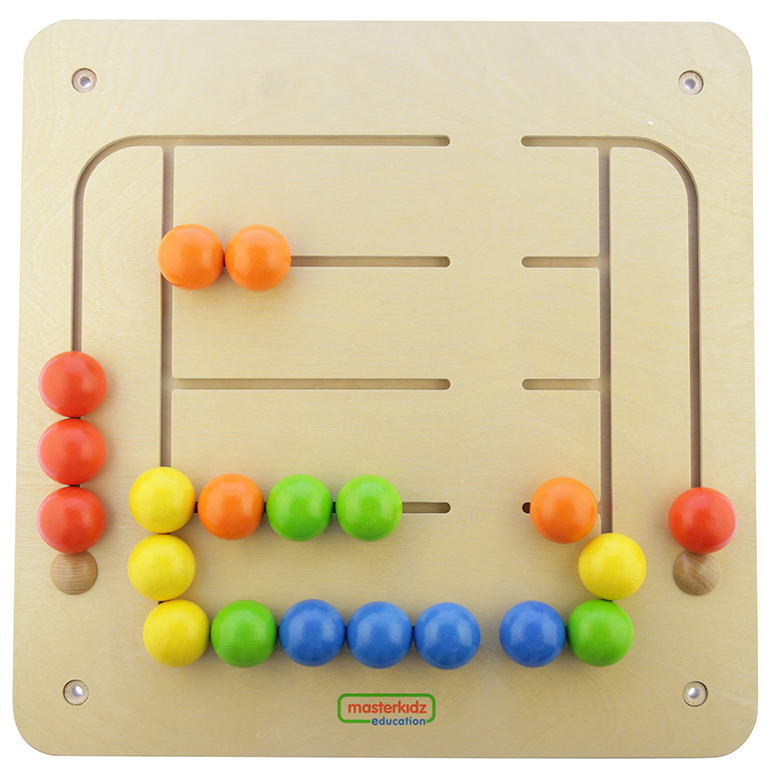 Настенная панель выполнена из березовой фанеры, на лицевой части выполнены прорези в виде лабиринта, в которых подвижно закреплены 5 групп из 4 шариков в 5 ярких цветах. По углам панели размещены отверстия для крепления. Размеры: 46х46 см. Ребенок, передвигая бегунки по лабиринту, сортирует их по цветам. Может задействовать как одну руку, так и две руки одновременно. Панель помогает в изучении цветов, способствует развитию межполушарных связей Эта увлекательная доска для обучения лабиринту содержит 24 фишки (по 4 каждой фишки 6 цветов). Их можно перемещать по доске, развивая мелкую моторику и зрительно-моторную координацию. Маршруты для стоек проложены вокруг доски, вдоль основных дорог или на боковых парковках. Вставив в них отдельные части, можно перемещать другие части, чтобы изменить порядок цветов. В результате детали можно сортировать по группам цветов или объединять в повторяющиеся цветовые последовательности. Ранняя помощь в счете, счете, сортировке, организации, распознавании цвета и логическом мышлении. Можно использовать на столе, СТЕНЕ СТЕНЫ, окне рисования или на рабочем столе. Изготовлен из фанеры европейского бука FSC В комплекте идут инструкция по сборке, набор для монтажа (винты, ключ для монтажа, пластиковые пробки).