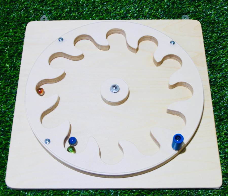 Тактильно-развивающая панель "Лабиринт-цветок" выполнена в форме цветка, которая с лицевой стороны ограждена прозрачным акриловым стеклом. При вращении панели шарики внутри цветка разлетаются по лепесткам. С ребенком можно поиграть в различные игры, например попросить его попасть определенным шариком в какой-либо лепесток. Все элементы панели – совершенно безопасны. Панель развивает у детей внимательность, ловкость, развивает тактильные навыки. Размер изделия: Высота: 400 мм. Ширина: 400 мм. Глубина: 60 мм. Вес - 2,25 кг. Объем - 0,01 м3 Изделие имеет сертификат соответствия Техническому регламенту Таможенного союза ТР ТС 008/2011. Изделие соответствует нормам пожарной безопасности (сертификат соответствия ПОЖАРНОЙ БЕЗОПАСНОСТИ). ВНИМАНИЕ! В связи с изменением цен на материалы, стоимость изделий может меняться. Узнавайте цены у менеджеров! Примечание: предприятие-изготовитель оставляет за собой право, без уведомления потребителя, вносить незначительные изменения в конструкцию, комплектацию, технические характеристики, внешний вид, включая изменения по упаковке, не ухудшающие потребительских свойств изделия и его методического назначения.