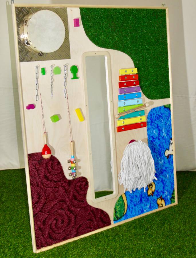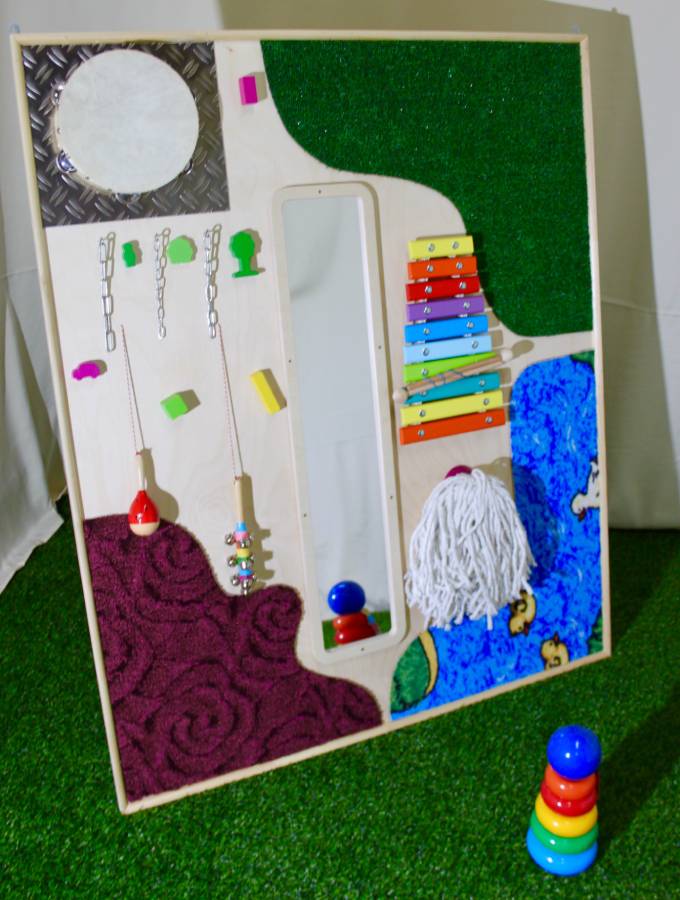 Панель способствует развитию тактильного, визуального и акустического восприятия, развивает осязательные навыки и интерактивную деятельность