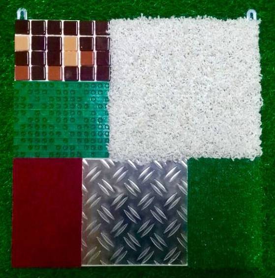 Панель "Текстуры" состоит из шести тактильных покрытий и служит для развития тактильных ощущений. Размер изделия: Высота: 400 мм. Ширина: 400 мм. Толщина: 10 мм. Вес - 1,6 кг. Объем - 0,016 м3. Изделие имеет сертификат соответствия Техническому регламенту Таможенного союза ТР ТС 008/2011. Изделие соответствует нормам пожарной безопасности (сертификат соответствия ПОЖАРНОЙ БЕЗОПАСНОСТИ).