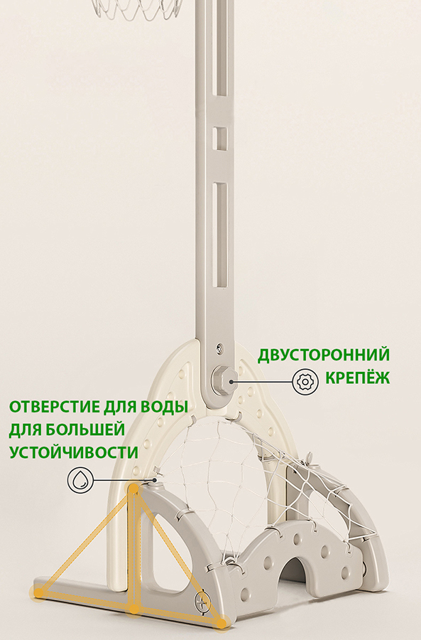 - баскетбольное кольцо регулируется по высоте от 62 до 117 см