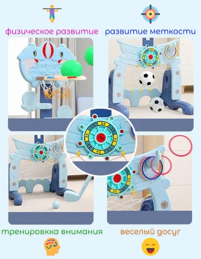 Баскетбольная стойка Морская - отличный выбор для активного малыша! Стойка оборудована для различных игр - баскетбол, футбол, гольф