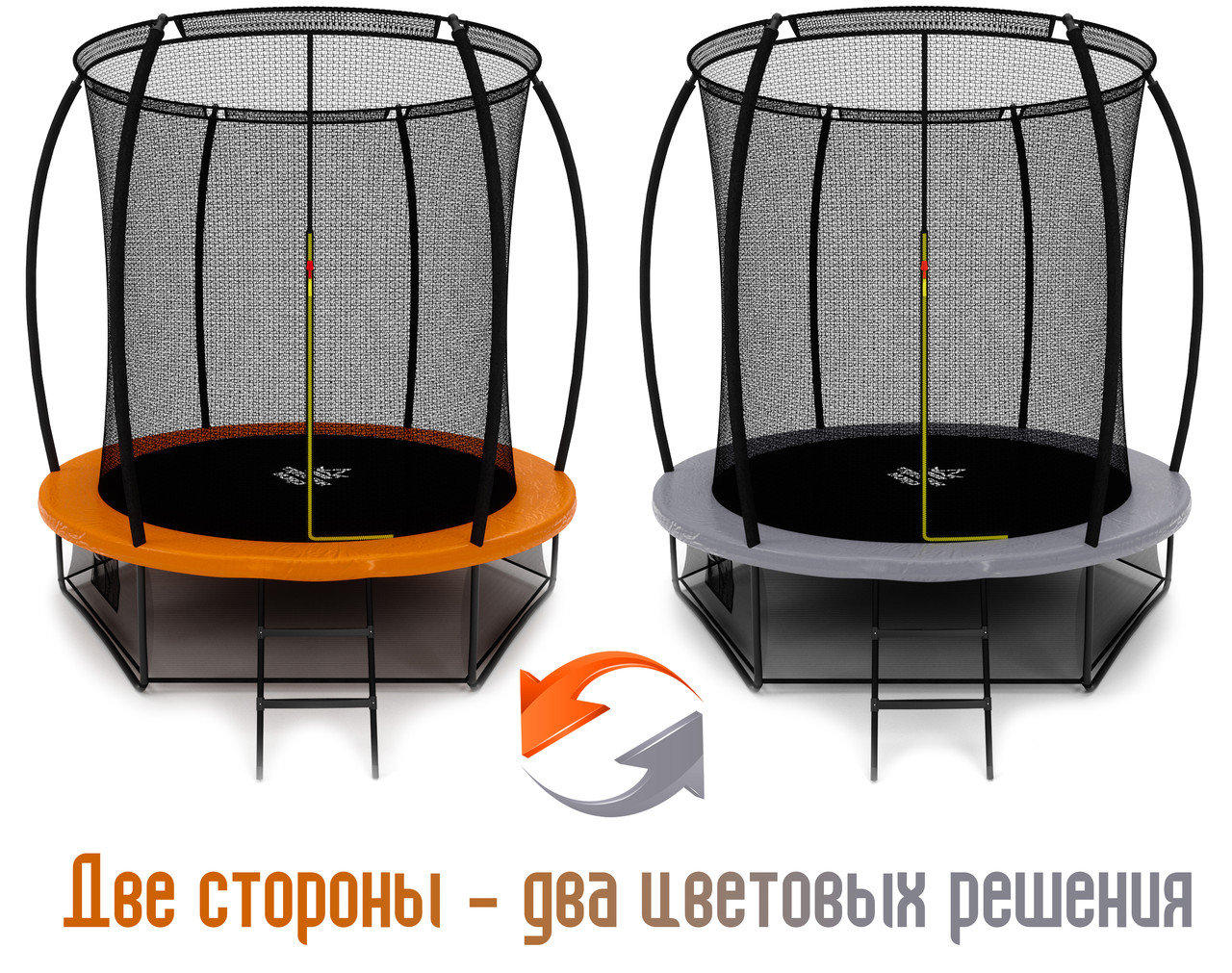 Двухцветный защитный кожух батута Премиальный не только поднимет настроение, но и станет изюминкой вашего загородного участка и подчеркнет индивидуальность. Оранжевый цвет - для любителей ярких эмоций, модный серый - для ценителей спокойствия и стиля.