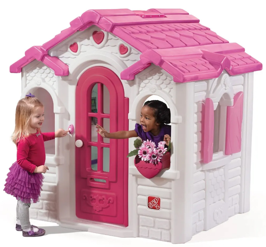 Игровой домик Грезы 2 станет идеальным местом для малышки и ее друзей, которые будут играть весь день в этом милом уличном игровом домике. Они будут чувствовать себя как дома с милым бело-розовым оформлением, приветственной цветочной коробкой в форме сердца, работающим дверным звонком с электронным звуком и электронным радиотелефоном. Дети могут открыть ставни, чтобы сообщить друзьям, что они дома, и участвовать в массе творческих игр, пока они готовят воображаемые блюда для званого ужина.