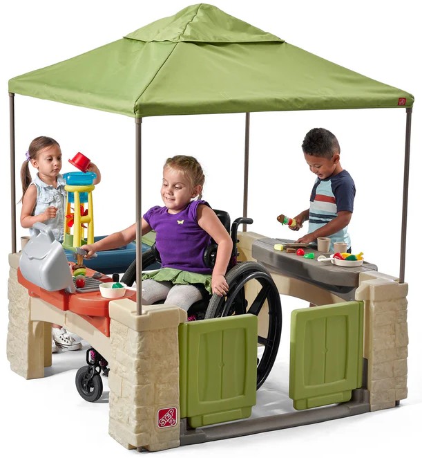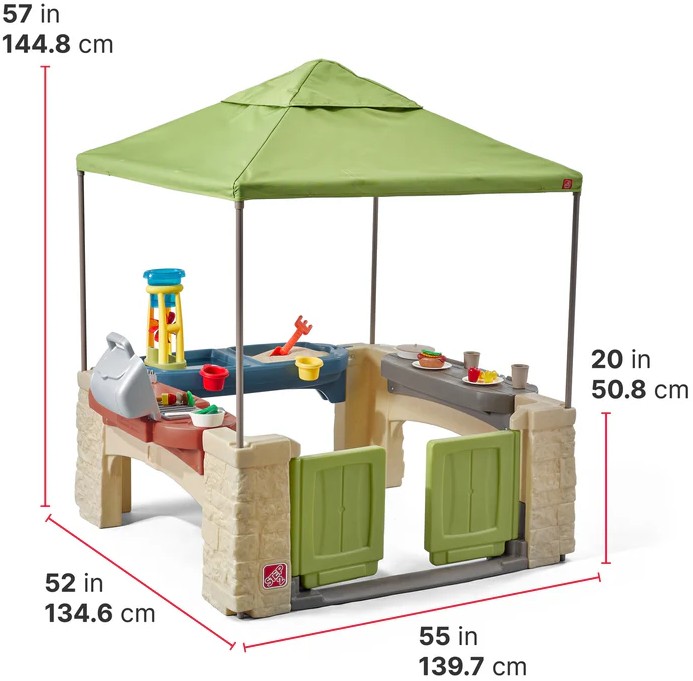 Возраст: 2+. Дизайн в стиле открытого павильона идеально подходит для отдыха на улице. Дети могут представить что готовят на кухне с грилем, раковиной и поворотным краном. В игровой зоне с песком и водой есть несколько аксессуаров и крышка для веселого времяпровождения! В коробке: Открытый домик-павильон, включая игровой гриль, стол для закусок, водный стол, песочную накидку, навес, набор аксессуаров из 16 предметов с сетчатым мешком для аксессуаров. Производитель США В патио Step2 Allaround Playtime с Canopy™ есть все для идеальной вечеринки на заднем дворе! Реалистичные сложенные каменные конструкции и навес в рыночном стиле превращают этот игровой домик на открытом воздухе в оазис для гриля и перекусов - с бонусной станцией для песка и воды! Дети могут проявить творческий подход, играя в открытый павильон, достаточно большой, чтобы друзья могли играть вместе одновременно. Когда игра закончится, положите прилагаемые аксессуары в сетчатый мешок и накройте его крышкой на столе с песком и водой, чтобы песок оставался свежим до следующего приготовления пищи! В комплекте Открытый игровой домик в виде павильона, игровой гриль, стол для закусок, столик для воды, покрытие для песка, навес, набор аксессуаров из 16 предметов и крепежные детали
