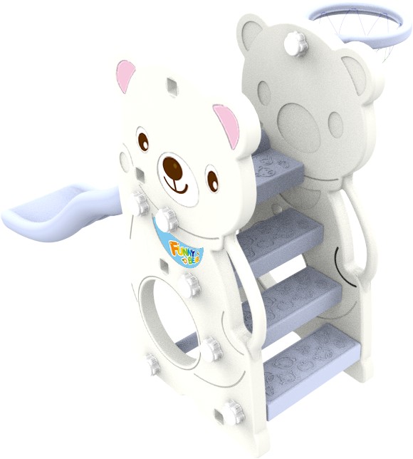 Яркая пластиковая горка Мишка полярный имеет плавный волнистый скат, а также оборудована баскетбольным кольцом. Новое цветовое решение в современных актуальных тонах не оставит равнодушным ребенка